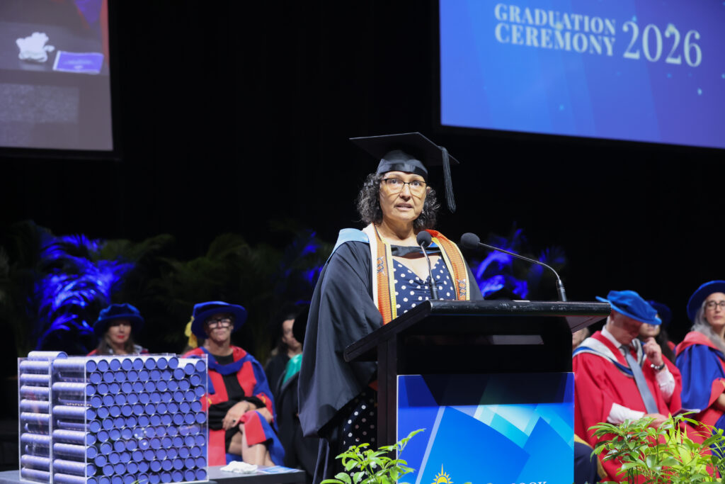 In late March 2026, Tracey experienced a powerful full‑circle moment, delivering the Occasional Address at the JCU College of Arts, Society and Education graduation ceremony in Townsville – where she herself graduated two years ago with a Bachelor of Arts, majoring in English and Indigenous Studies. It is an honour she says she will carry with her for a very long time.