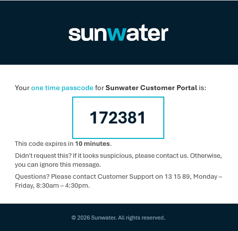 For further assistance with managing your account please call your Customer Support Team on 13 15 89 or email customersupport@sunwater.com.au.