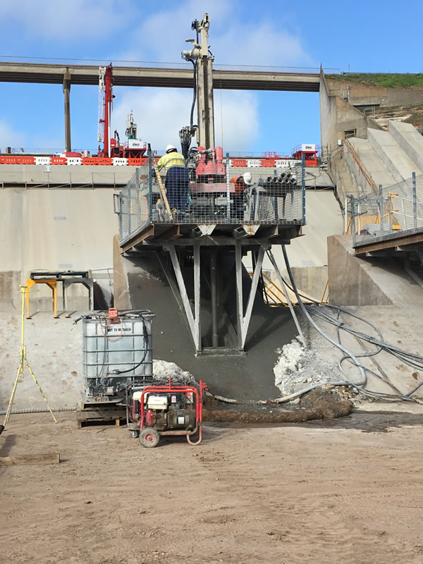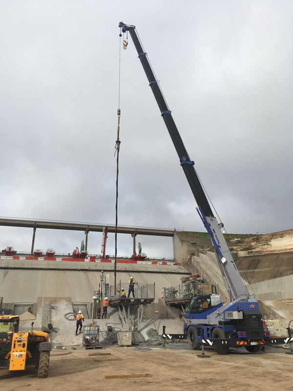 - installation of 78 active (stressed) anchors along the spillway Ogee Crest.