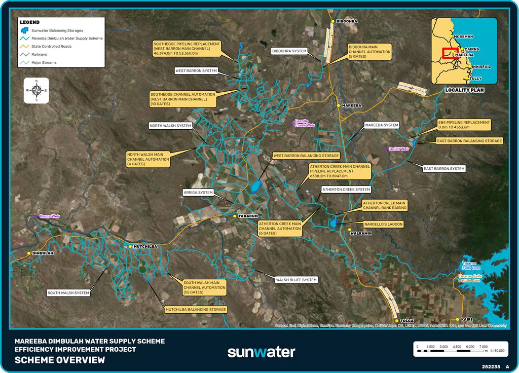 Project Map Home Projects Mareeba-Dimbulah Water Supply Scheme Efficiency Improvement Project Project Map Mareeba-Dimbulah Water Supply Scheme Efficiency Improvement Project Mareeba and Dimbulah, North Queensland Contact Sunwater Project overview Project map